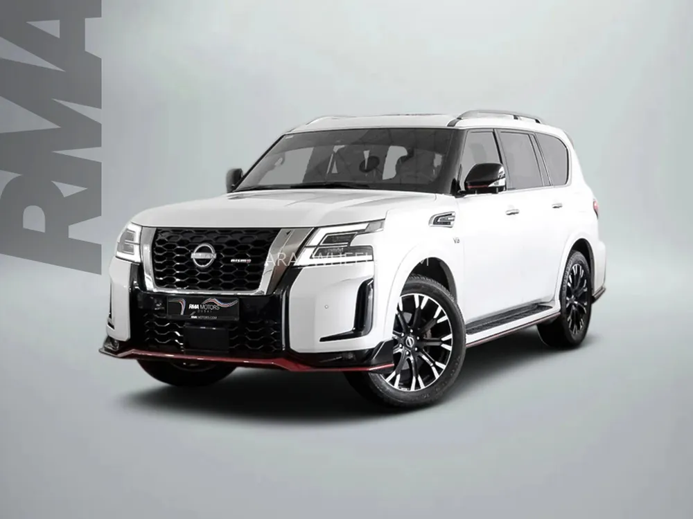 5.6L naturally aspirated V8 engine, 428 hp, 560 Nm torque, 7-speed automatic transmission, Intelligent 4WD system, Drive mode selector, NISMO-tuned performance suspension, Quad NISMO performance exhaust, Performance braking system, Exclusive NISMO wide-body kit, NISMO front and rear bumpers, Red NISMO exterior accents, 22-inch forged NISMO alloy wheels, Power-folding side mirrors, Rear spoiler, Roof rails, PNISMO-exclusive leather and Alcantara seats, Electrically adjustable front seats, Driver seat memory function, Heated front seats, Leather multifunction steering wheel with red centre marker, Carbon-style interior trim, Dual-zone automatic climate control, Rear air conditioning vents, Ambient interior lighting, Push-button start, Smart key entry, Auto-dimming rear-view mirror, Touchscreen infotainment system, Built-in navigation, Apple CarPlay, Android Auto, Bluetooth connectivity, BOSE premium sound system, Rear seat entertainment screens, Wireless phone charging, USB charging ports, 360-degree Around View Monitor, Front and rear parking sensors, Blind spot monitoring, Lane departure warning, Forward collision warning, Intelligent emergency braking, Adaptive cruise control, Vehicle Dynamic Control (VDC), Traction control system, Hill start assist, Hill descent control, Tyre pressure monitoring system, Multiple airbags, ISOFIX child seat anchors