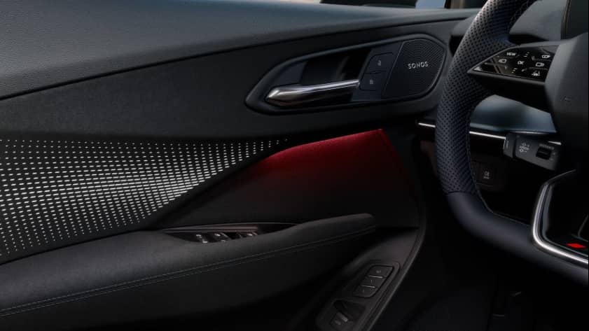استخدمت أودي مواد معاد تدويرها عالية الجودة لأغطية المقاعد، إلى جانب حزمة إضاءة محيطية توفر 30 لونًا يمكن اختيارها.