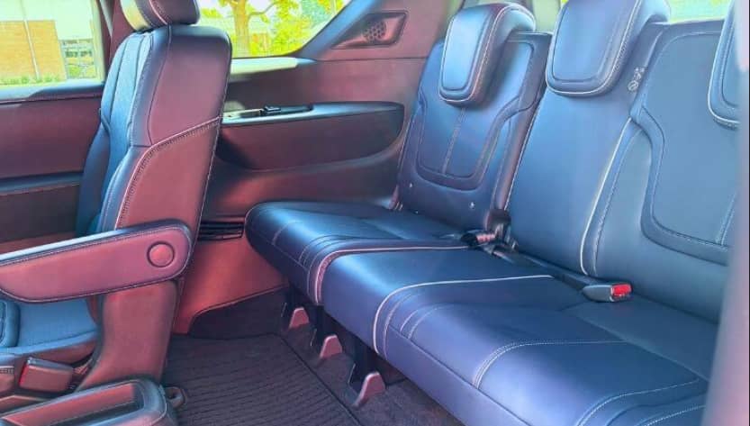 عند الدخول إلى داخل QX60، يجد الركاب مساحة تتسع لما يصل إلى سبعة أشخاص. المقعدان الأماميان في الصف الثاني المتاحان كخيار مقاعد «كابتن» يوفّران راحة إضافية لأولئك الذين يفضّلون ترتيباً بستة مقاعد. المقاعد مغطّاة بجلد ناعم مع تطريز ماسي، وتزيينات من خشب مفتوح المسام، وإضاءة محيطة تضفي جوًا فاخرًا داخل المقصورة.