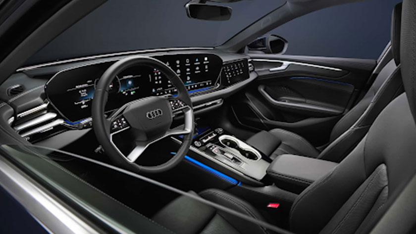 في الداخل، تتميز أودي A6 موديل 2026 بتصميم داخلي يرتكز بشكل كبير على التكنولوجيا، مع استخدام مواد راقية. وتأتي بشاشة بانورامية ضخمة تضم عدادات رقمية ووحدة ترفيه معلوماتي. كما يمكن طلب شاشة إضافية على جانب الراكب الأمامي، مما يوفر مساحة عرض إضافية.
