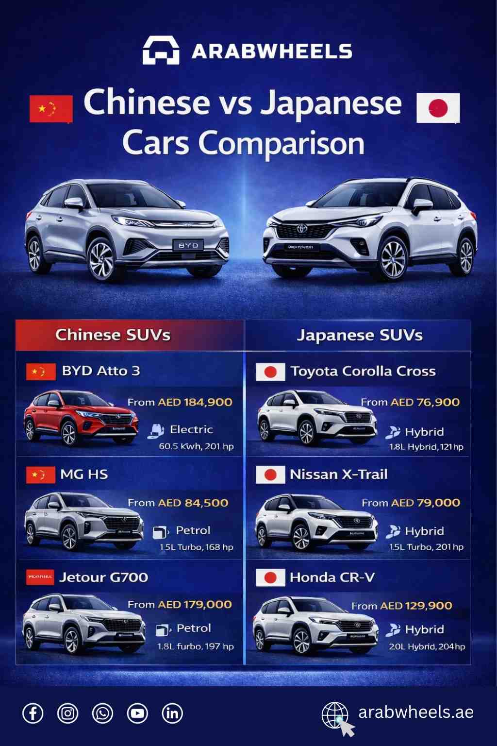 Below are selected Chinese and Japanese SUVs competing in similar segments in the UAE market.